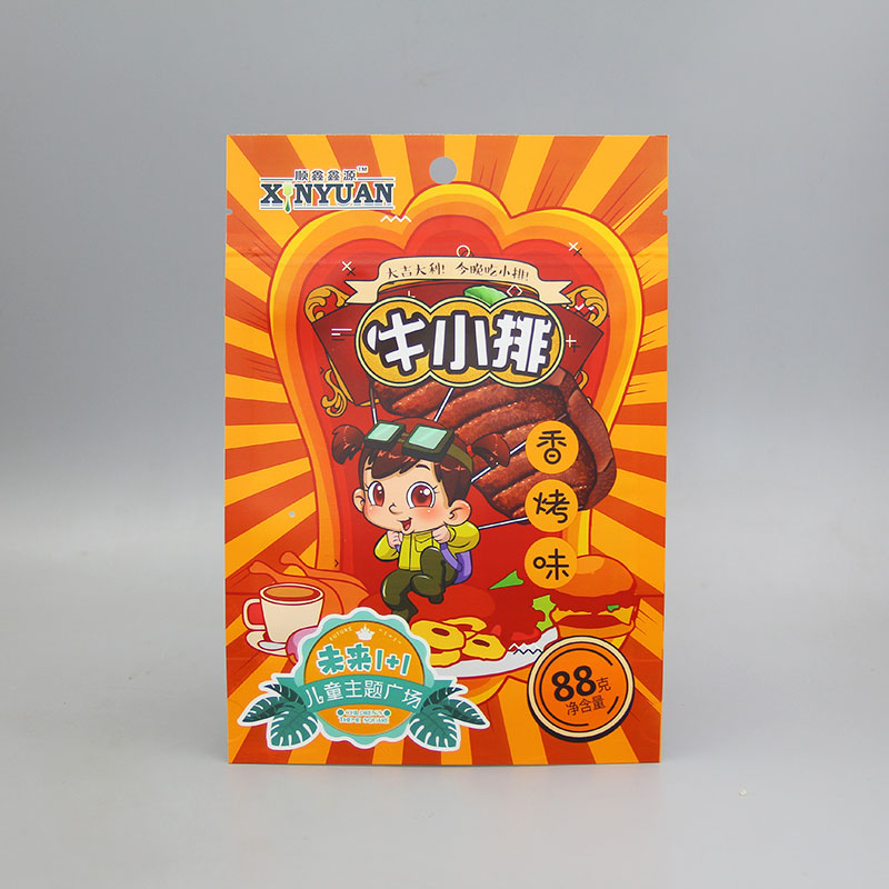 這是我們常見肉干類零食的包裝袋,由巨人紙塑包裝公司設(shè)計生產(chǎn),雖然按照使用角度來說它只是名為“牛小排”的牛肉干包裝袋,但在我們紙塑包裝行業(yè),它也可以稱為牛皮紙開窗袋、復(fù)合自立袋、自封包裝袋等等。